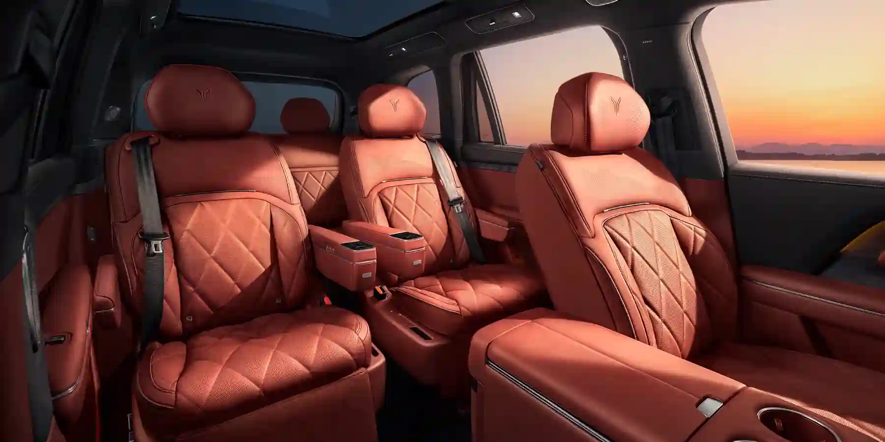 Архитектура салона объединяет переднюю и заднюю части в стильно оформленное пространство, создавая атмосферу физического и эмоционального спокойствия. Эффектная контурная подсветка и формы элементов интерьера отражают сдержанную восточную эстетику и высокую роскошь.