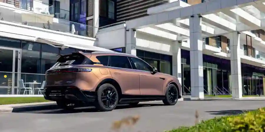 Поскольку, как мы уже говорили, марка отвечает за слова, версии EVR Sport Edition были добавлены весьма выразительные спортивные акценты. Это атлетичная решетка радиатора, выполненная в черном глянце, глубокие выштамповки в нижней части бампера, а также спойлер на задней кромке крыши, который не только придает кроссоверу более стремительный вид, но и, по словам представителей бренда, эффективно увеличивает прижимную силу на высоких скоростях. И без того мощную стать автомобиля усиливают двадцатидюймовые черные колесные диски спортивного дизайна, доступные исключительно для версии EVR Sport Edition.